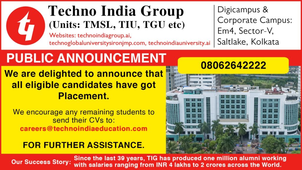 While celebrating this success, TIG also extends an invitation to any remaining students to send their CVs to careers@technoindiaeducation.com. The institution continues to work tirelessly to assist all its students in achieving their career aspirations.
