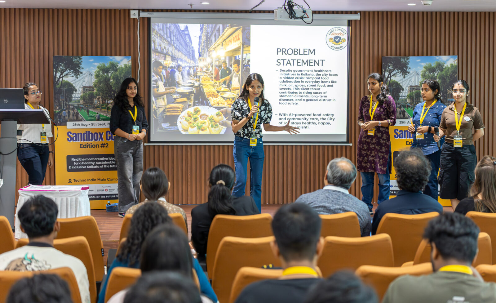 The 2nd edition of the Sandbox CCU Challenge 2025 unfolded at Techno India University, concluding with a transformative week-long innovation sprint from August 25th to September 5th, 2025. The initiative brought together students, facilitators, urban planners, and innovators for an intensive co-creation experience that aimed to reimagine Kolkata as an inclusive and sustainable urban space.
