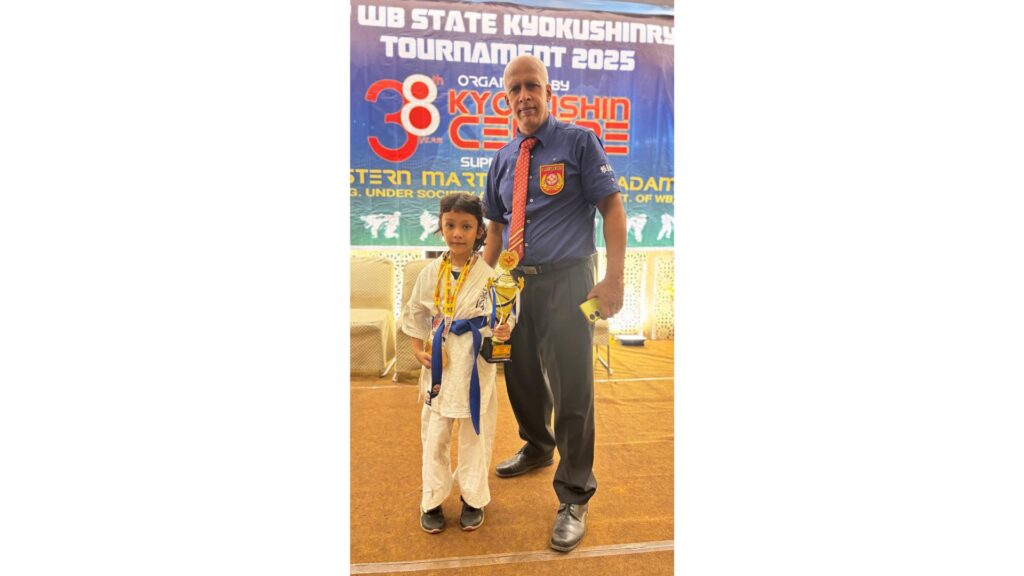 At the 3rd West Bengal State Kyokushinryu Tournament 2025, held in Belur, Howrah, Gunakshi showcased remarkable skill and determination, earning multiple accolades across various categories. Competing among some of the finest young karate enthusiasts from across the state, she secured 1st place in Kihons (Basics) in the Below 9 Years Girls Group and another 1st place in Kata in the Below 8 Years Girls Group. Her consistency and technique reflected not only her hard work but also her deep understanding of the art of Kyokushinryu Karate.