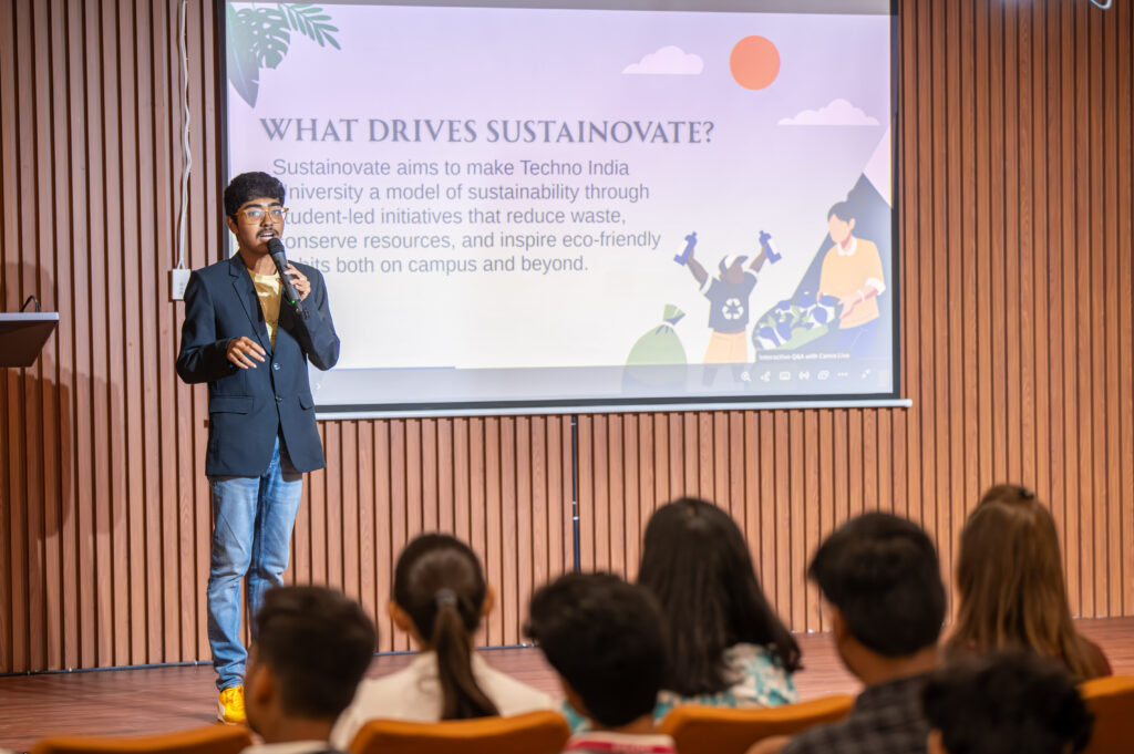 Sustainovate Club officially launched at Techno India University on 17th October, and it arrived like a promise: student-led, practical, and urgent. The seminar hall was full of curious minds eager to translate climate concerns into campus projects — from waste reduction and biodiversity drives to hands-on renewable-energy pilots. The club’s goals are clear and measurable: reduce campus energy consumption, move toward zero-waste systems, cut resource use, expand green spaces, and place wellbeing at the heart of sustainability.