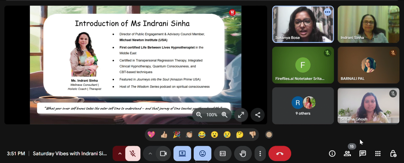 The afternoon brought together students, faculty, and wellness enthusiasts eager to explore self-healing through the insights of Ms. Indrani Sinha, an internationally acclaimed wellness consultant and holistic coach. With over three decades of experience, Ms. Sinha’s credentials include being the first certified Life Between Lives hypnotherapist from the Michael Newton Institute, USA in the Middle East, where she now serves as Director of Public Engagement and Advisory Council Member. Her work has been showcased in the Amazon Prime documentary “Journey into the Souls,” and she also hosts the Wisdom Series podcast.