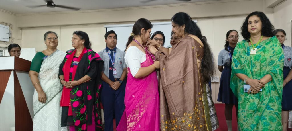 A key highlight of the day was the formal handover of leadership. Outgoing President Ishwar Surolia Sharma gracefully passed the Charter and the Bell to the newly appointed President Samiksha Banerjee, symbolizing the seamless continuation of leadership and commitment. Ishwar reflected on the year gone by, sharing the club’s achievements and moments of pride from the Interact year 2024–25.