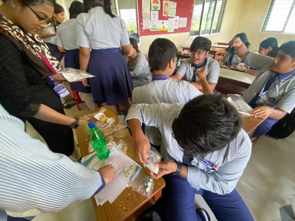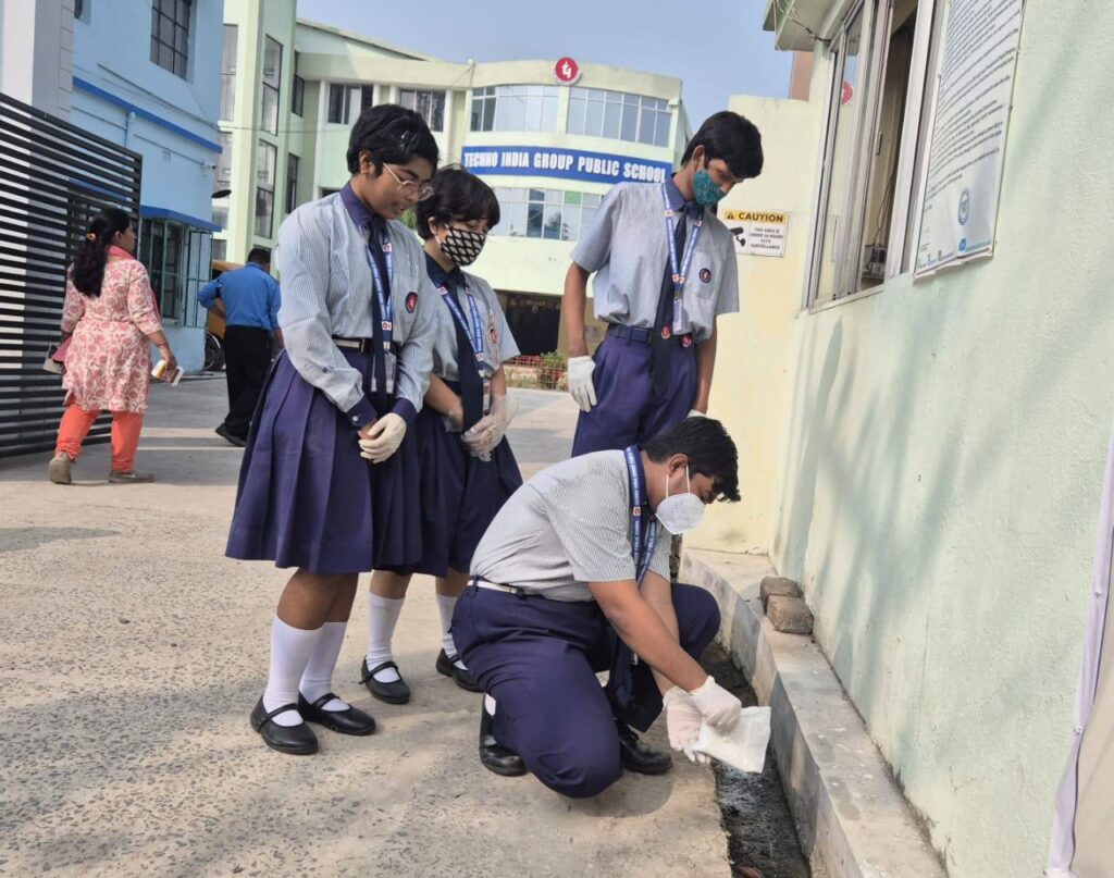 The club focused on maintaining hygiene and sanitation, applying bleaching powder across the school campus and mentoring younger students on cleanliness practices — reinforcing the idea that personal responsibility contributes to the greater good.