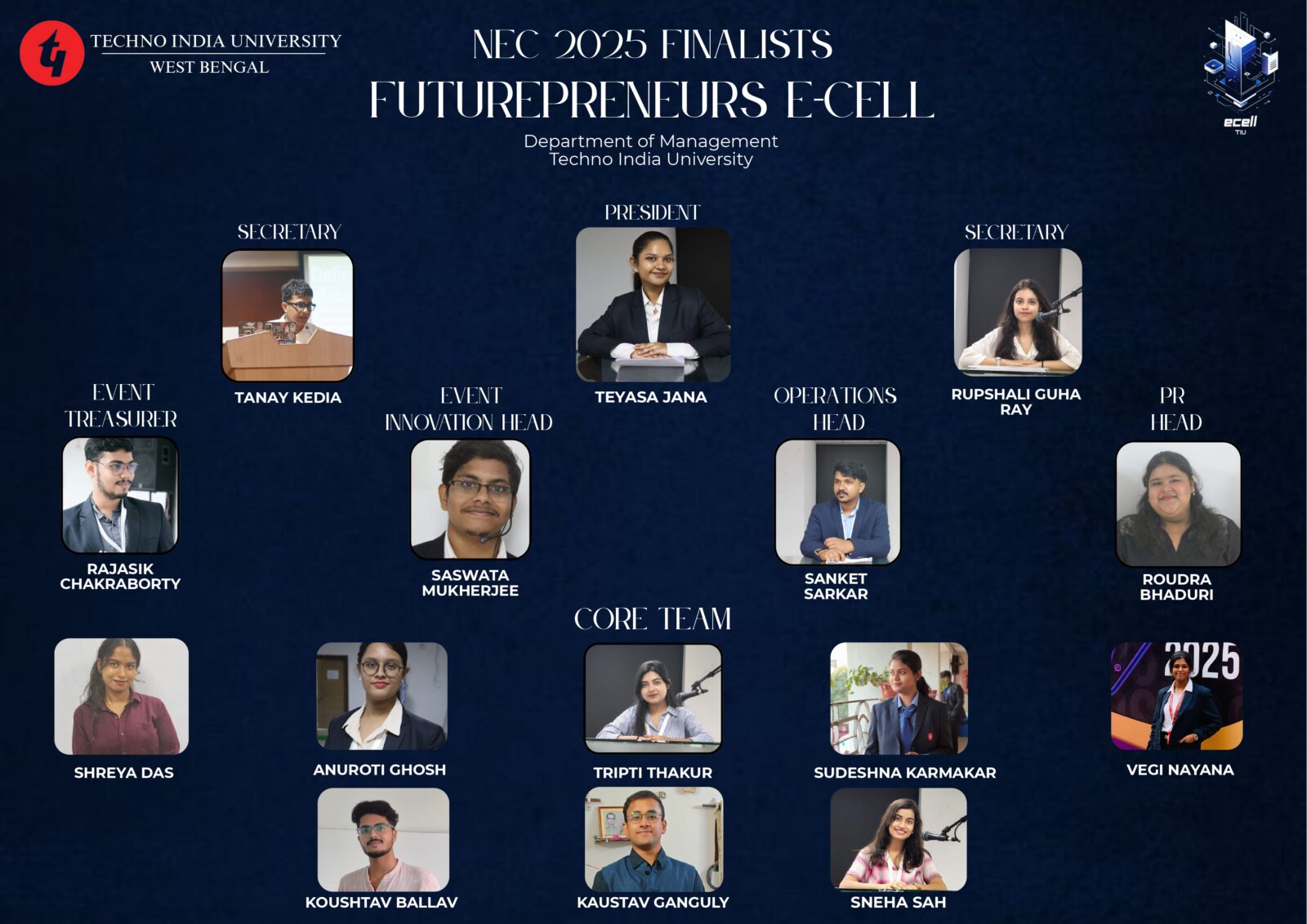 The grand finale of NEC 2025 will be held at IIT Bombay on December 10, 2025, where FUTUREPRENEURS will represent Techno India University on a national platform among the brightest young innovators in India.