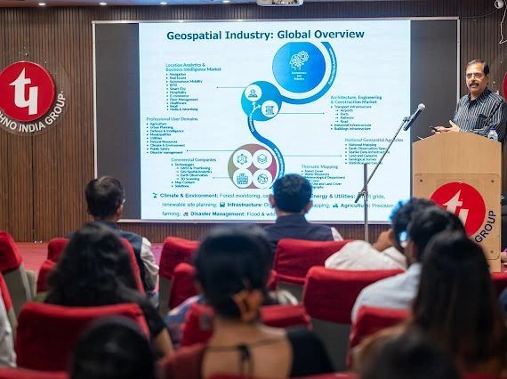 In a vibrant convergence of innovation, technology, and academic brilliance, the Departments of Geospatial Science and Agriculture Science of Techno India University, West Bengal—along with IQAC—hosted a remarkable Industry Connect Seminar on Geospatial Technology & Smart Agriculture on 12 November 2025. Held at the elegant Conference Hall, the event transformed the campus into a hub of forward-thinking ideas and real-world insights that left students energized and inspired.