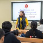 In the Q&A session that followed, a student raised a thoughtful concern about the increasing reliance on mobile technology and AI. He asked how students can maintain their own creativity and problem-solving abilities when AI often performs tasks for them. Prof. Chaudhuri responded by first reversing the question: “What do you think are the disadvantages of AI?” The student explained that overuse of AI weakens critical thinking, imagination, and the ability to explore multiple solutions independently. Building on her point, Prof. Chaudhuri acknowledged the challenge but emphasized the importance of balance. He reminded students that tools should strengthen—not replace—their abilities, and that true learning happens when individuals push themselves beyond convenience and engage deeply with their own ideas.