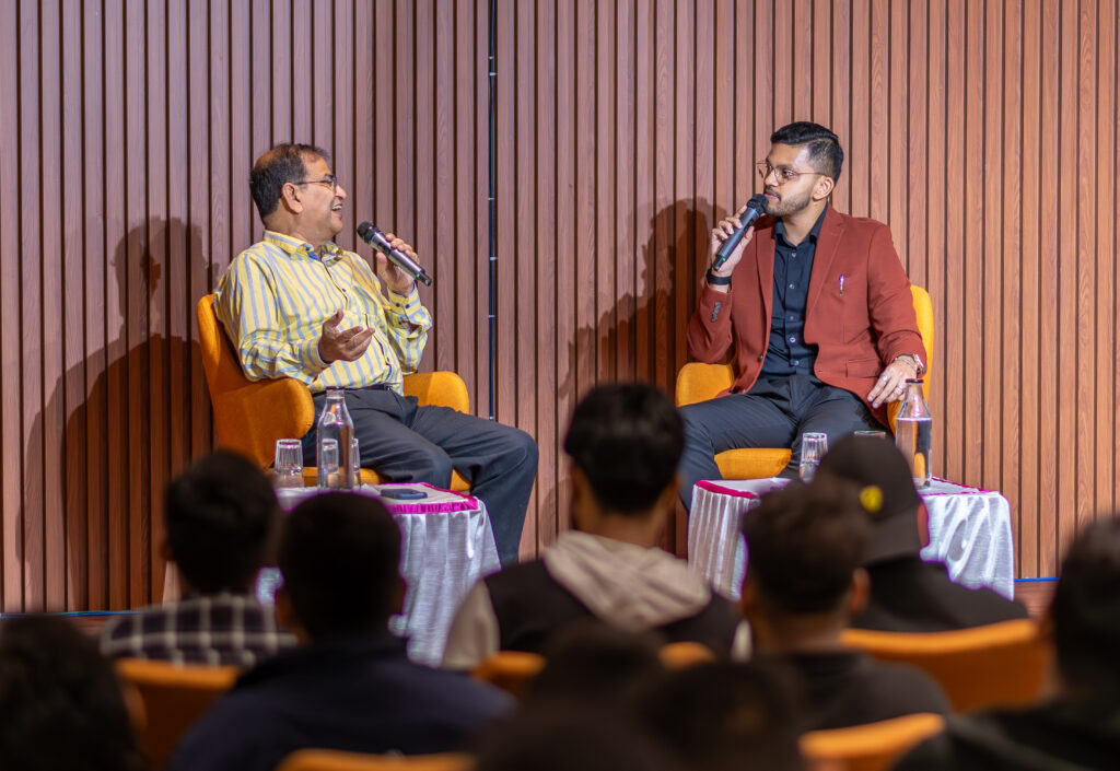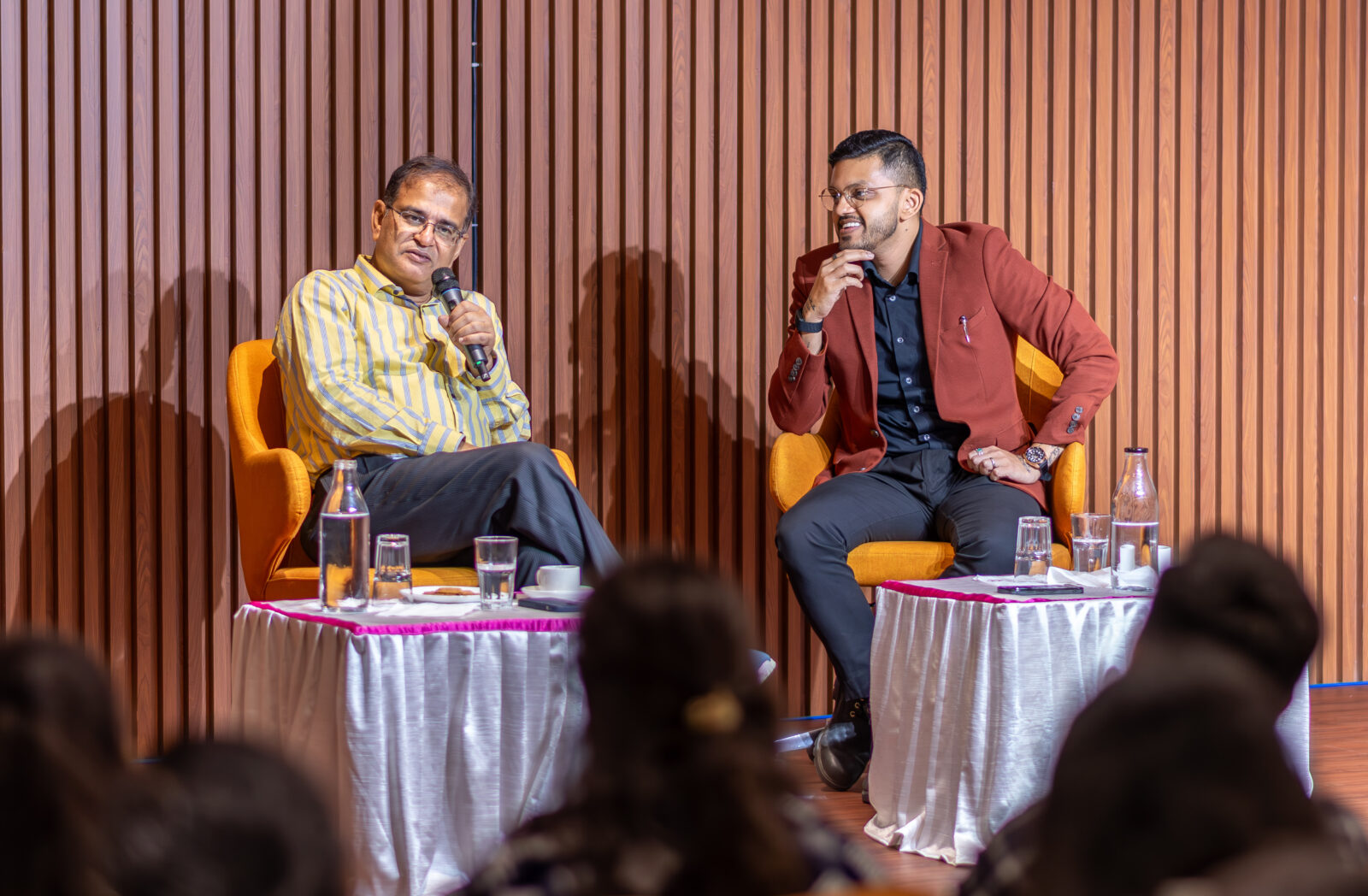 The session, titled “India 2035: Technology, Trust & Transformation,” drew packed attendance with students eager to gain insights from two of the country’s most influential voices in technology, academia, and innovation.