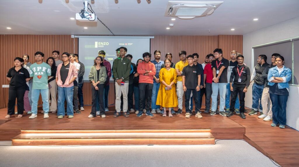 The School of the Future at Techno India University hosted ENZO 2025, an exciting showcase of creativity, intellect, and teamwork by the AIML batch. Held on 3rd December 2025 at the 11th Floor Seminar Hall, the event transformed the space into a hub of energy where students stepped out of their comfort zones and embraced challenges with enthusiasm.