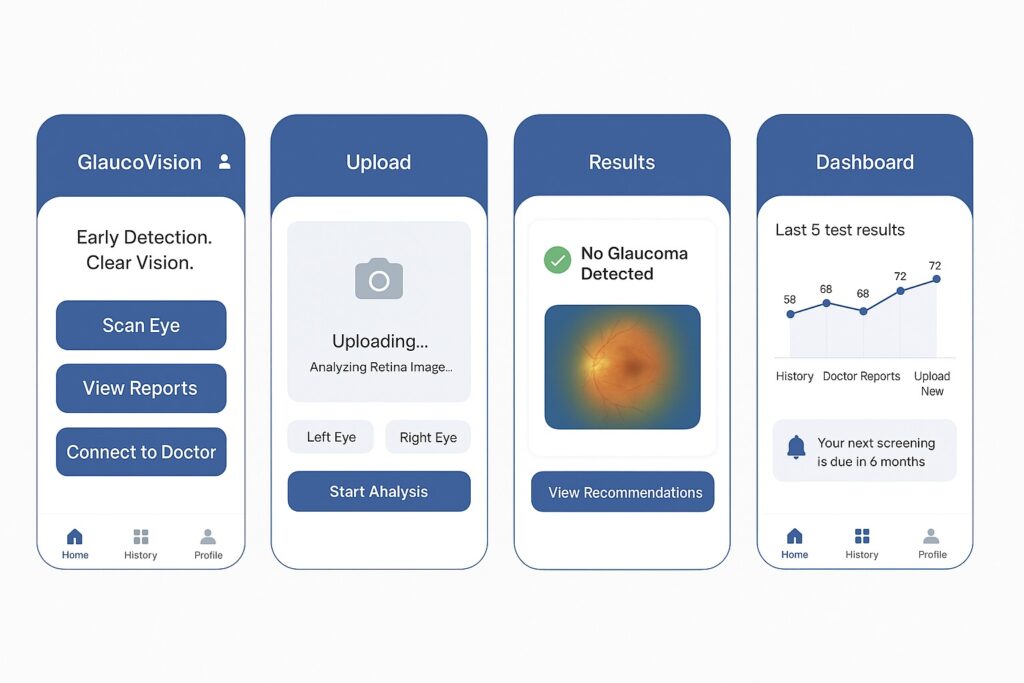 Supported by dedicated faculty mentors and the Institution’s Innovation Cell (IIC), the team developed a process that is simple yet powerful. A photograph of the patient’s eye is captured and uploaded to their platform, where an AI model analyzes it in depth and produces a detailed report indicating glaucoma risk and severity. This has the potential to transform preventive eye care in communities that lack specialist access.