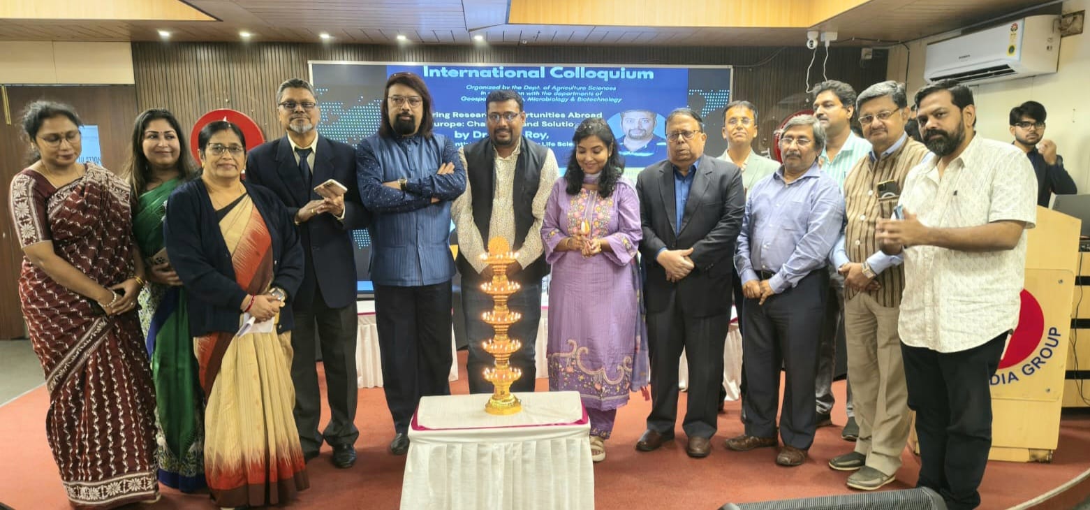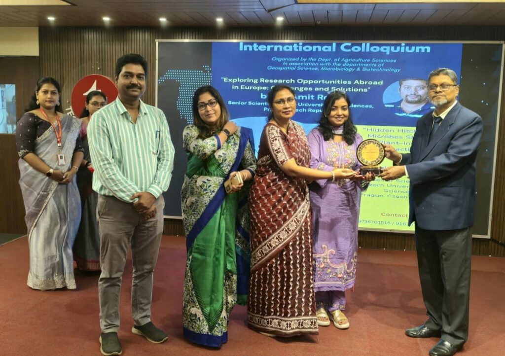 International speakers Dr. Amit Roy and Dr. Amrita Chakraborty, Senior Scientists from the Czech University of Life Sciences, Prague, played a central role in the colloquium. During the inaugural proceedings, which included lamp lighting and felicitation, Dr. Pijush Mallick, Associate Professor and Head, Department of Agriculture Sciences, formally introduced the program. In his welcome address, Prof. Dr. Atanu Kumar Raha highlighted the critical role of international research partnerships in advancing scientific knowledge and innovation.