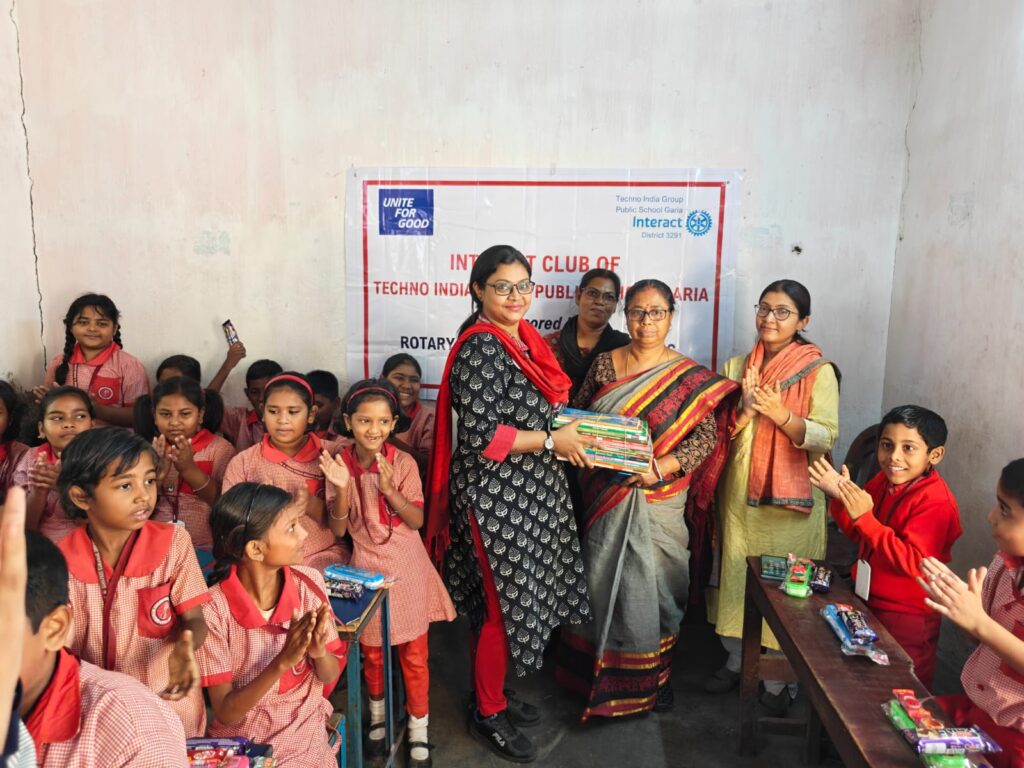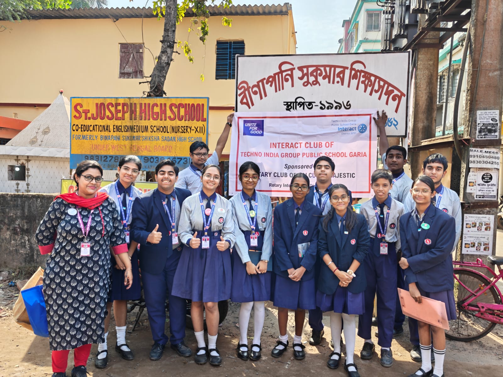 At Techno India Group Public School, Garia community service is not just an activity — it is a value deeply woven into the fabric of student life. This spirit came alive once again as the members of our school’s Rotary Interact Club, Prayas, embarked on a thoughtful outreach programme to support the young learners of Binapani Sukumar Sikshasadan, a neighboring school with less privileged students.