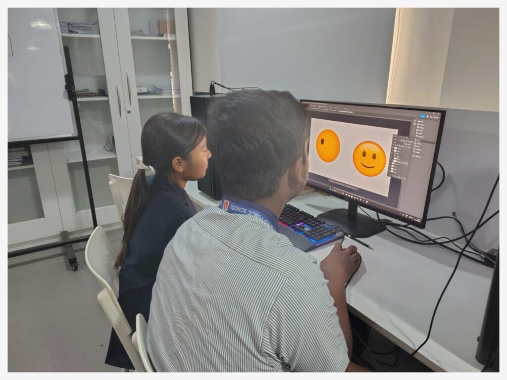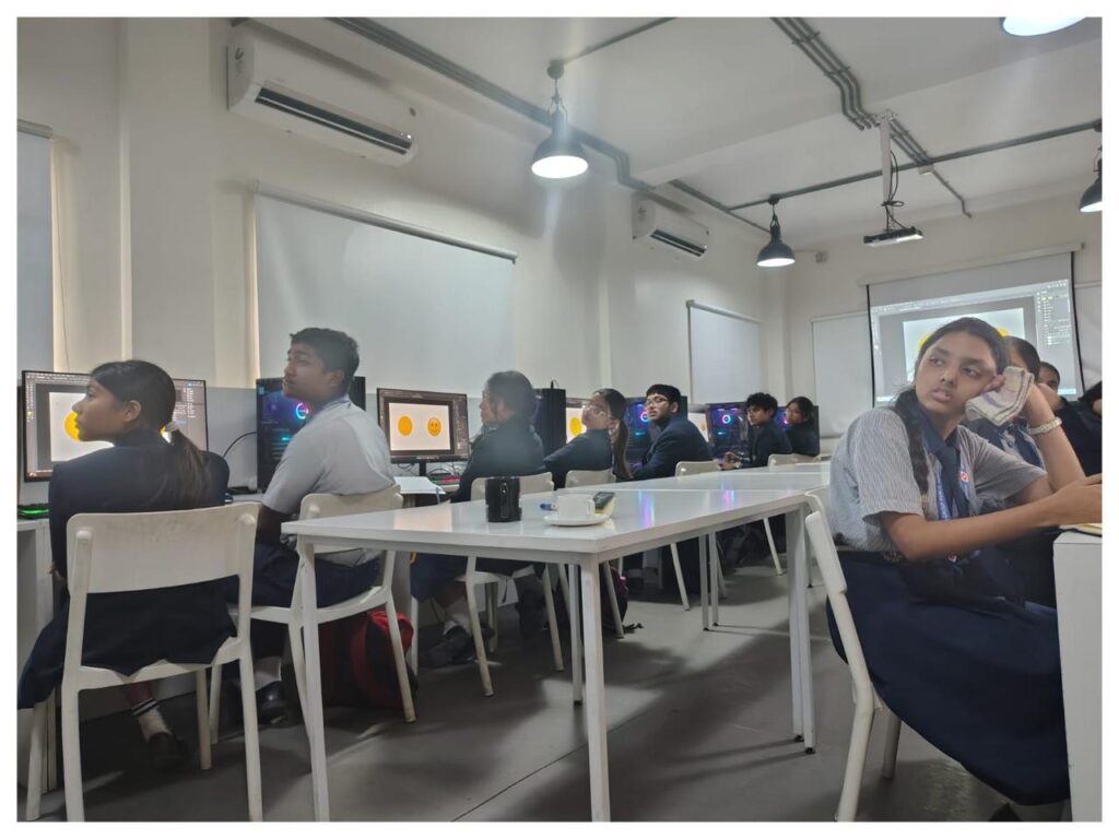 The learning environment encouraged curiosity, discussion, and hands-on exploration. Students were introduced to core principles such as vector graphics, typography, visual identity, and digital composition, while also understanding how these skills are applied in real-world creative projects. The structured yet welcoming approach helped them gain confidence, ask questions freely, and envision how design translates into meaningful careers.