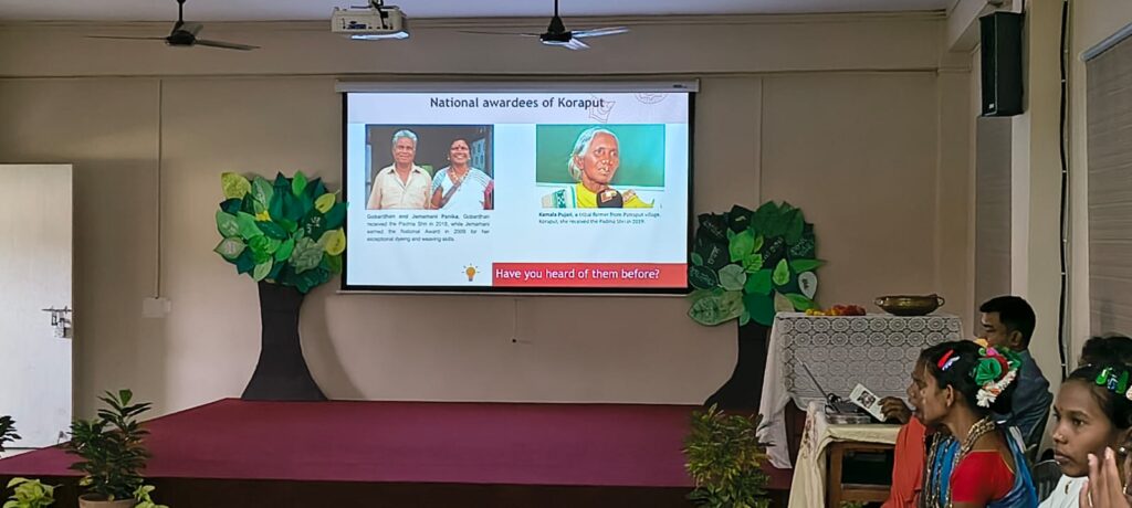 The session began with a documentary film that transported students to Koraput, a breathtakingly beautiful town in Odisha known for its deep-rooted cultural traditions. The film showcased the region’s diverse art forms and the way the tribes of Koraput continue to safeguard their ancestral practices through handicrafts, songs, and dance.