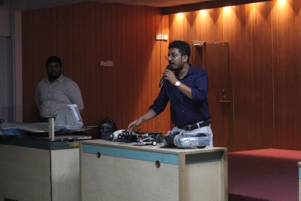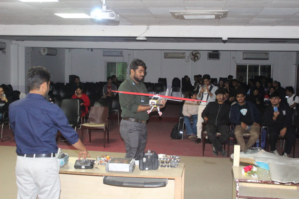 The technical sessions were led by experts from Blackbird Robotix, under the leadership of Mr. Ayan Mahapatra, CEO of Blackbird Robotix, who shared valuable industry insights and practical knowledge drawn from real-world robotics applications. Participants were introduced to major domains including manual robotics, autonomous robotics, combat robotics, and UAV (drone) development. Through live demonstrations, real-time explanations, and interactive sessions, students gained in-depth understanding of robot design, control systems, sensors, and engineering challenges faced in industry environments.