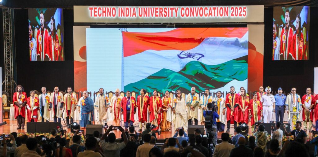 Convocation 2025 at Techno India University celebrated academic excellence and future readiness as over 2,000 graduates received degrees at Biswa Bangla Convention Centre. With Padma Shri Dr. Sanghamitra Bandyopadhyay and industry leaders present, honorary D.Litt. awards and strong academia–industry synergy highlighted confident graduates prepared for an AI-driven world globally ahead.
