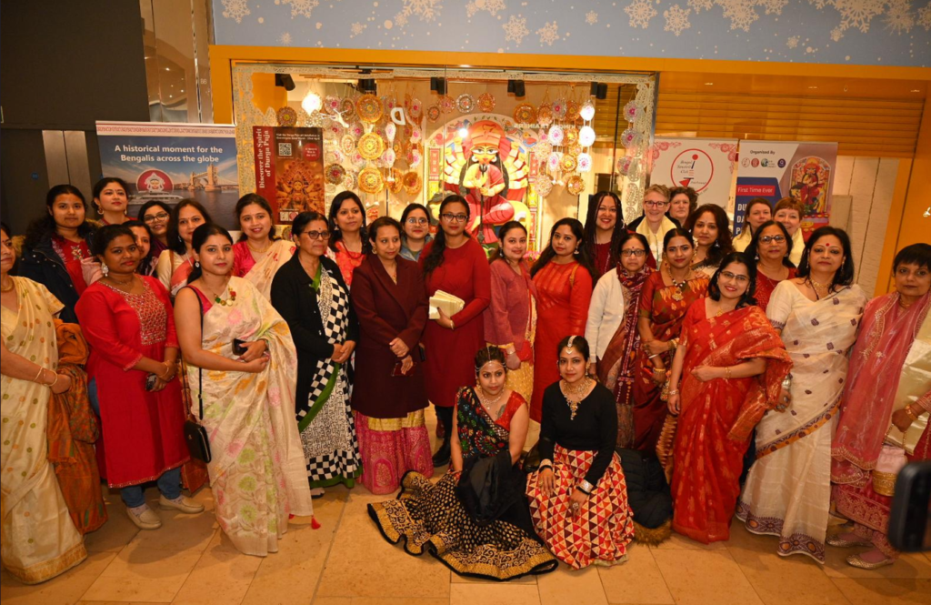 Students of Techno India University and allied institutions unveiled a sustainable Durga idol at Queensgate Shopping Centre, Peterborough, on 23 March 2025—marking the city’s first. Part of the Durga Darshan initiative, the installation celebrated Kolkata’s Durga Puja as a global cultural symbol, blending heritage, sustainability, and Indo-UK cultural exchange.