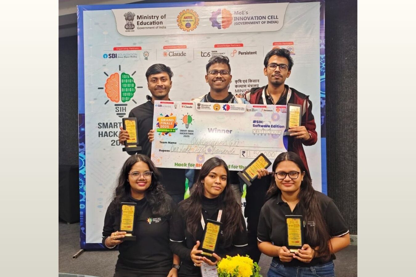 A student team from Techno Main Salt Lake emerged as Grand Finale winners with Krishi Drishti, an AI–IoT solution developed for the Ministry of Agriculture & Farmers Welfare. Enabling real-time tracking of crop residue management machines, the scalable, low-cost platform promotes smarter farm operations, reduced stubble burning, and data-driven agriculture—showcasing TMSL’s innovation-led, real-world problem-solving ethos.