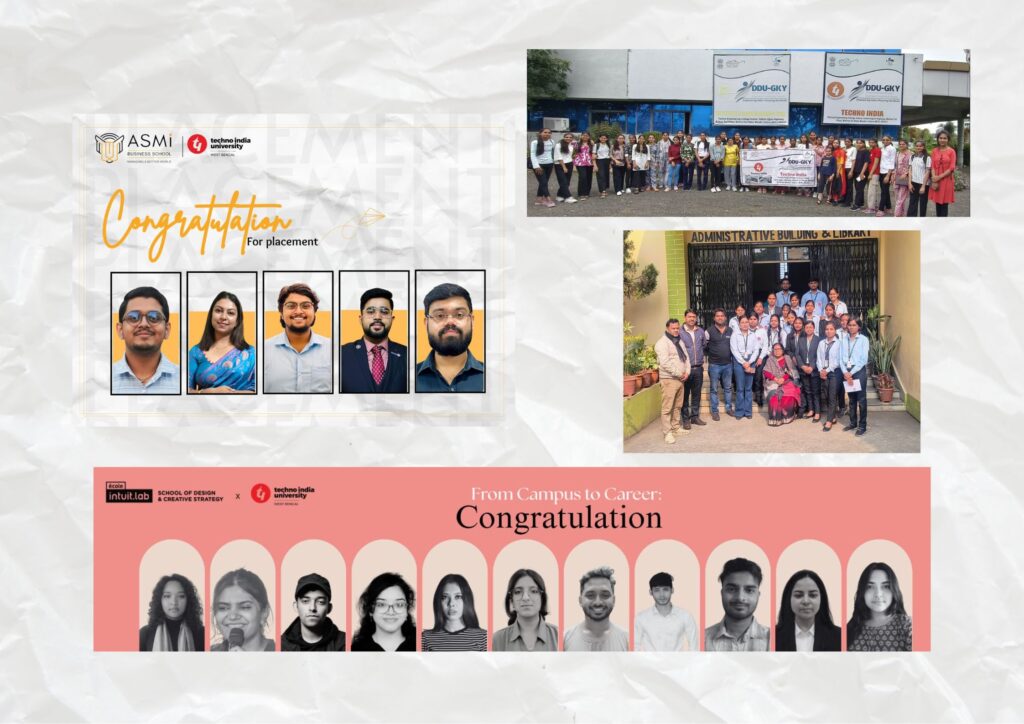 Creative disciplines also saw remarkable outcomes at École Intuit Lab x Techno India University, with students placed at Studio Onto, Design Pinata, Hatch, Ninestars, and Drop Top Royale, while one alumna launched her own design venture. Beyond campuses, Techno India Group and ICEI enabled life-changing placements for 70 rural candidates under DDU-GKY, reinforcing a shared commitment to employability, innovation, and inclusive growth.