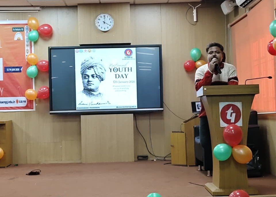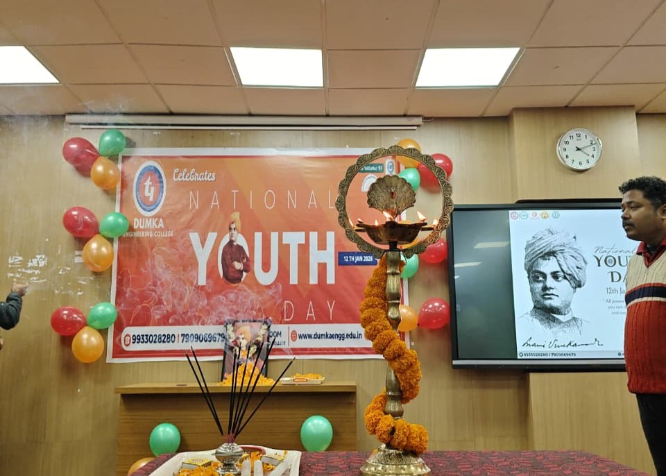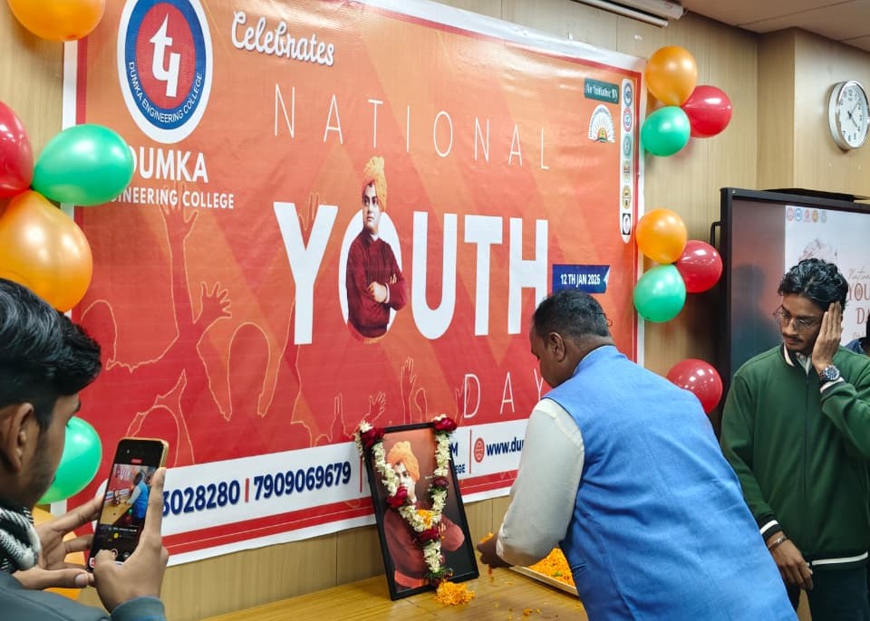 Dumka Engineering College, a part of the Techno India Group, observed National Youth Day 2026 with great enthusiasm and active student participation on 12th January 2026, marking the birth anniversary of Swami Vivekananda—India’s iconic youth leader and spiritual visionary. The programme aimed to inspire young minds through the ideals of discipline, character building, innovation, and nation-building.