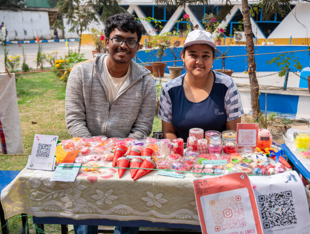 The Crafted Flames, led by Arjaita Halder from Techno India University along with her partner Abir Naskar, brought warmth to the campus with their range of affordable, handcrafted scented candles. Each creation reflected patience, care, and a love for detail. Describing the experience, the team shared that it was “More than just setting up a stall—it felt like a space to learn, connect, and grow,” as meaningful conversations with visitors turned their passion into shared moments of joy.