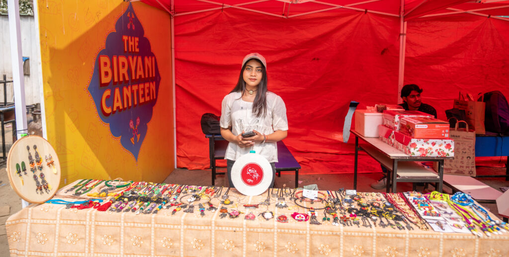 Tumio Devi, owned by Hritthika Paul, featured elegant handmade jewellery that reflected care, creativity, and personal storytelling. Each piece carried a sense of individuality, resonating strongly with visitors. “I’m truly grateful to Techno India University and The Biryani Canteen for creating such a wonderful platform for young and upcoming entrepreneurs like us. Flea Market 2.0 has given us the opportunity to showcase our latest collections and connect directly with people on campus. At D Love Loop, we offer a range of jewellery and creative accessories, and the response has been incredibly encouraging. Do visit our stall and check out our page—it’s been an amazing experience being part of this event.” she shared.