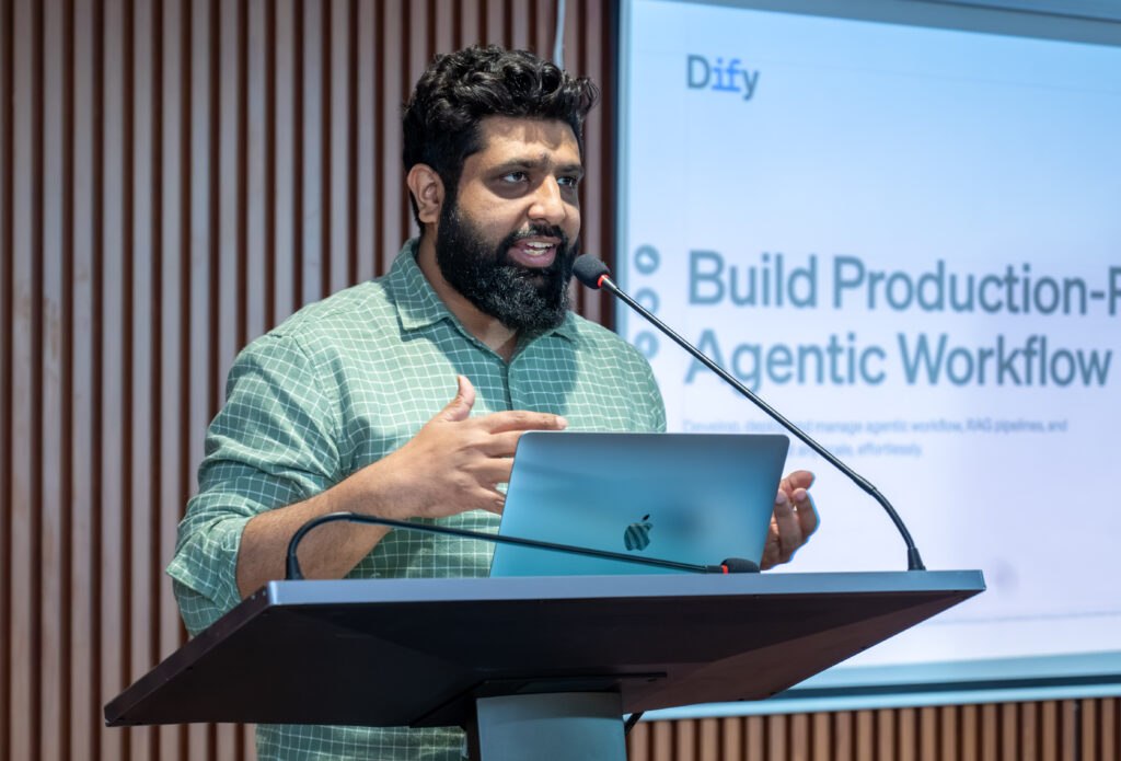 At the heart of the meetup was Dify, an emerging AI application development platform that simplifies how artificial intelligence solutions are built and deployed. Designed to bridge the gap between concept and execution, Dify enables developers to create Agentic AI workflows, integrate large language models, and transition seamlessly from prototype to production. Its accessibility empowers students, startups, and experienced developers alike to build scalable, intelligent, and secure applications — proving that innovation is no longer limited to large tech ecosystems..