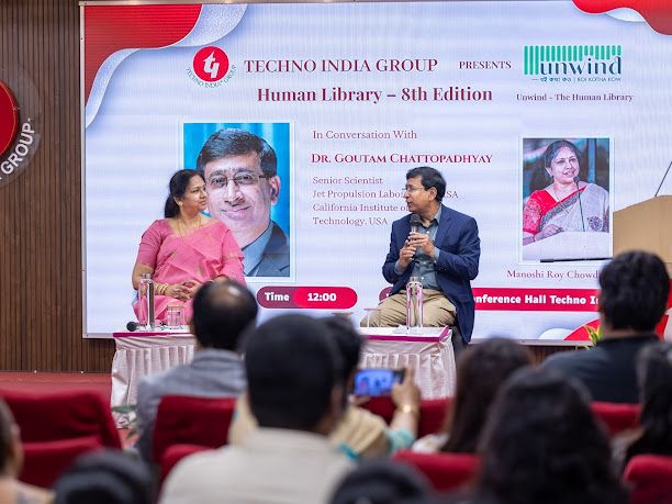 Dr. Goutam Chattopadhyay, Senior scientist at NASA–Jet Propulsion Laboratory, California Institute of Technology, joined the conversation with Prof. Manoshi Roy Chowdhury, Co-Chairperson of the Techno India Group. The Human Library initiative, conceptualized by Prof. Roy Chowdhury, continues to create a unique platform where accomplished individuals share their personal journeys, struggles, and insights with students through candid conversations that bring real-life experiences closer to young minds.