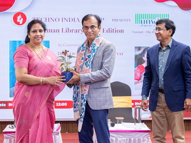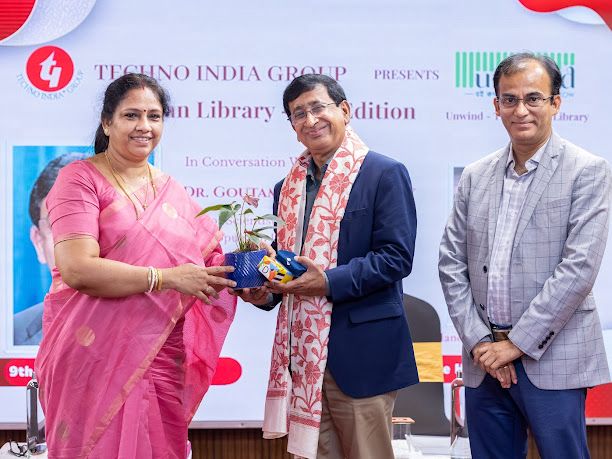 Every life carries a story, and often the most powerful lessons come not from textbooks but from real journeys of passion and perseverance. Embracing this spirit, Techno India University hosted the 8th Edition of the Human Library: “Unwind” on 9 March, where students of Techno Main Salt Lake and Techno India University witnessed an inspiring on-stage conversation between Prof. Manoshi Roy Chowdhury, Co-Chairperson of the Techno India Group, and renowned scientist Dr. Goutam Chattopadhyay.