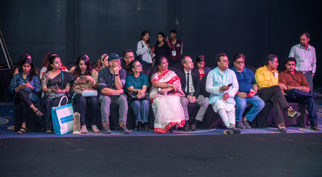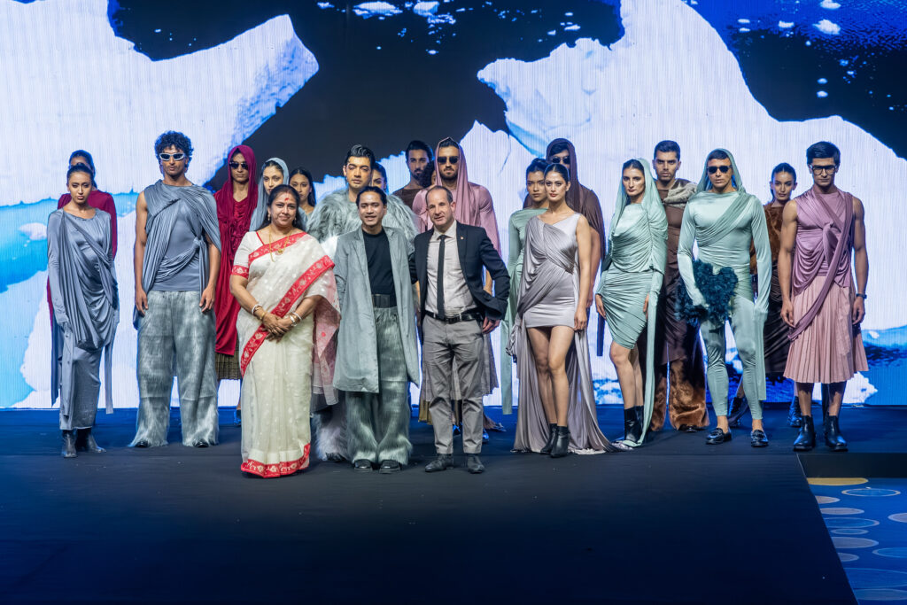 The event was also graced by the presence of Prof. Manoshi RoyChowdhury, Co-Chairperson of Techno India Group, whose attendance added encouragement and pride for the young designers presenting their work on such a prestigious platform. Her support reflected the institution’s commitment to nurturing creative talent and providing students with opportunities to showcase their work in professional fashion arenas.