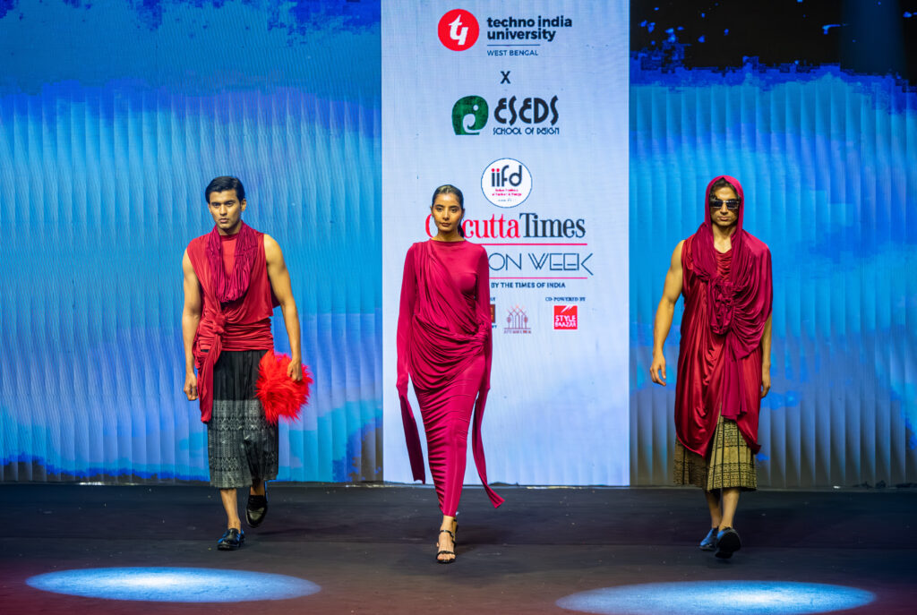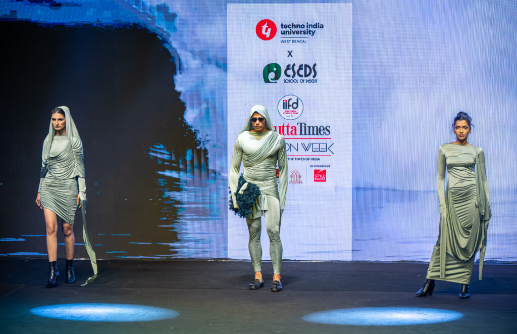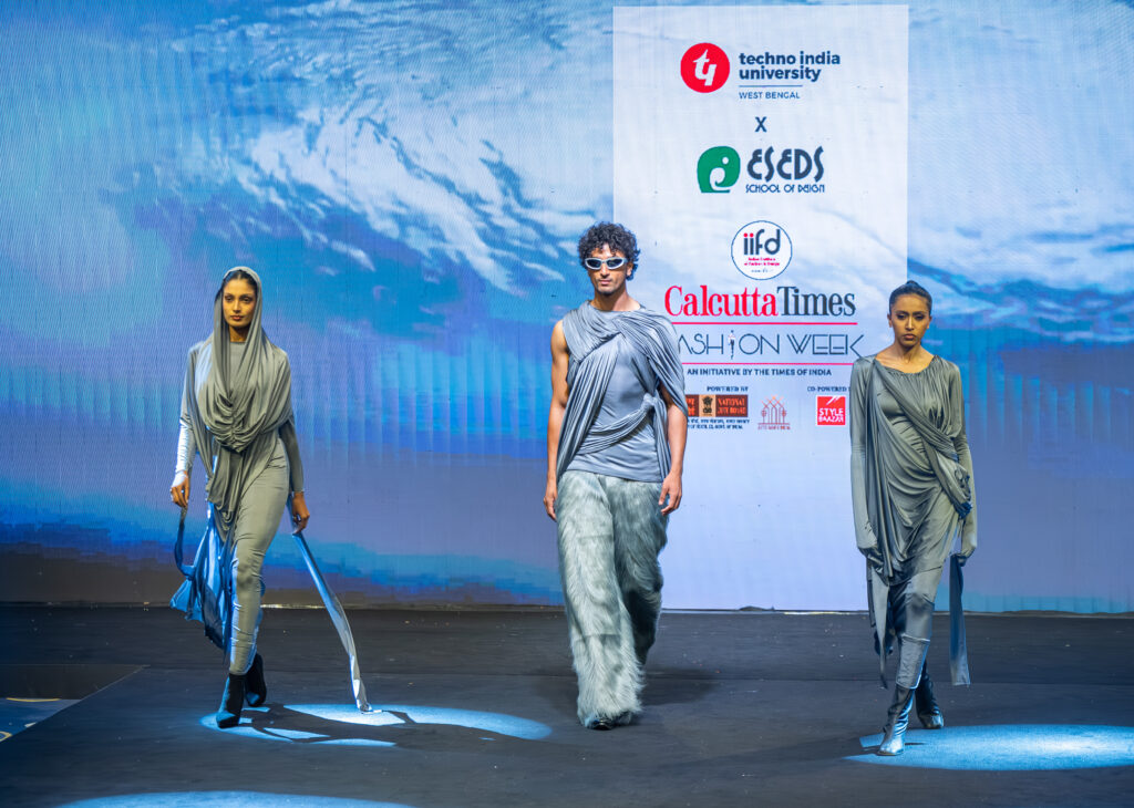 Students of ESEDS School of Design, a proud institute of Techno India University, created a remarkable presence at Calcutta Times Fashion Week 2026 with their captivating fashion showcase titled “Fluidal Motion.” The collection reflected a bold exploration of movement, identity, and transformation, turning the runway into a powerful visual narrative where fashion met artistic expression.