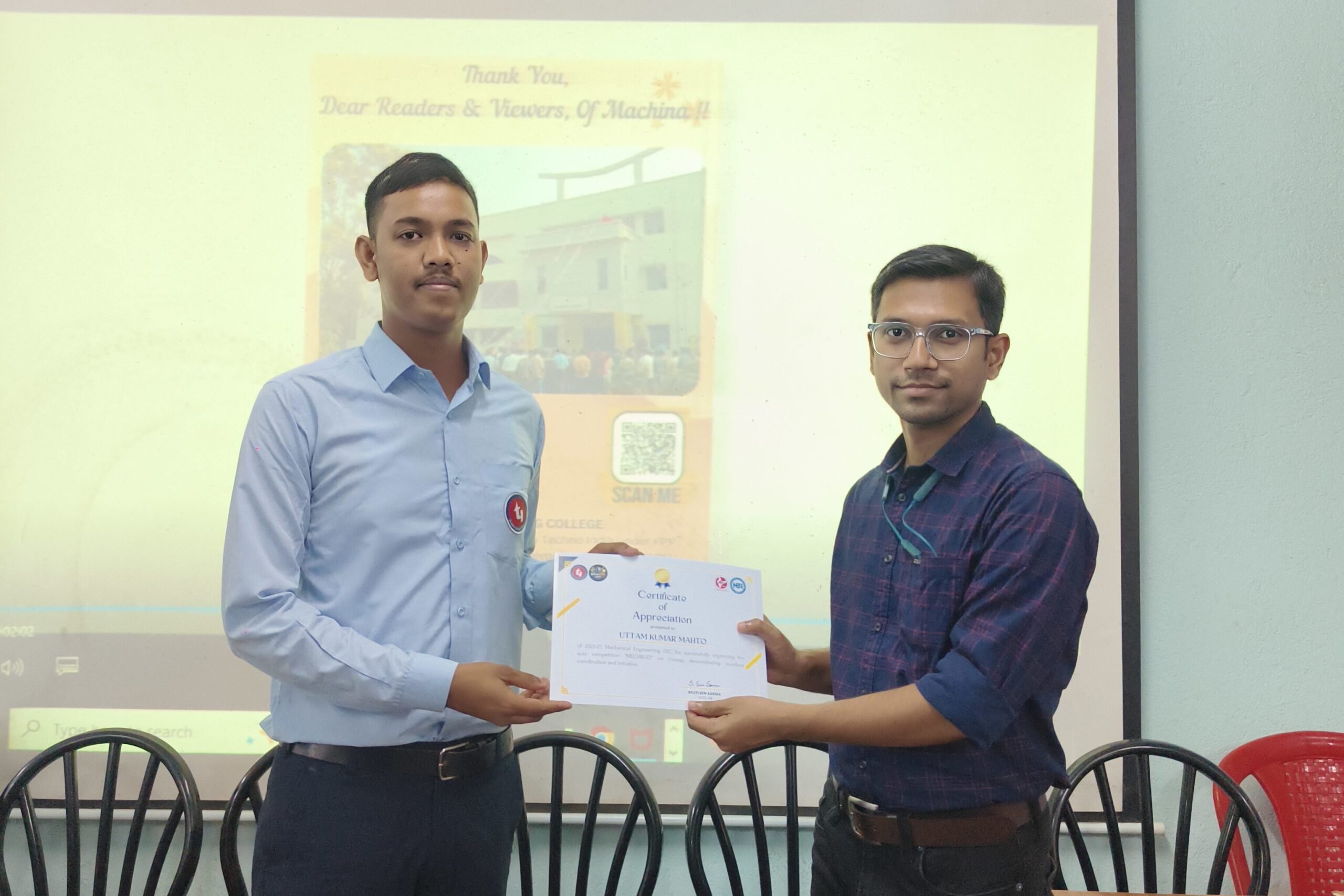 The event concluded with the distribution of Certificates of Appreciation to faculty members and students who contributed significantly to the magazine and departmental activities. The successful release of MACHINA 2026 stands as a testament to the department’s commitment to fostering creativity, technical curiosity, and collaborative learning—hallmarks of a progressive academic environment.