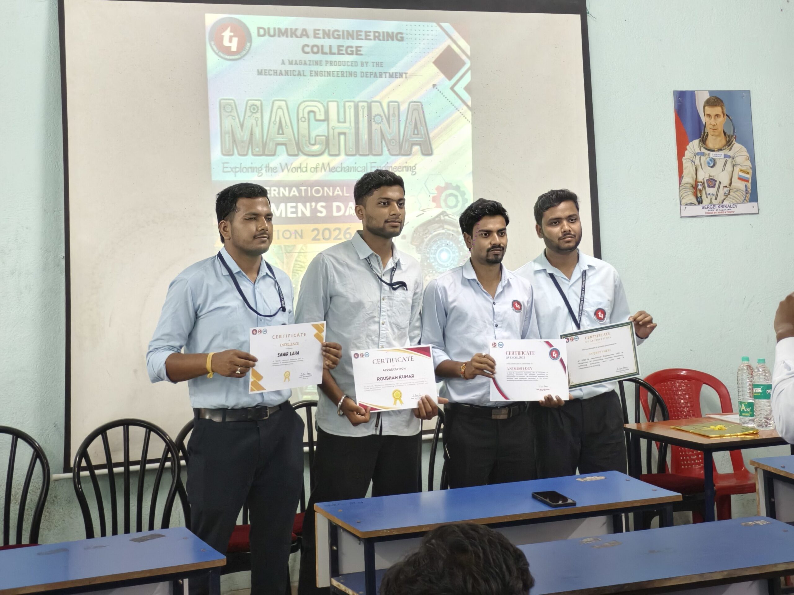The Department of Mechanical Engineering at Dumka Engineering College celebrated International Women’s Day on March 8, 2026, with the proud unveiling of its annual departmental magazine, “MACHINA – Exploring the World of Mechanical Engineering.” The publication ceremony, held in the department’s Smart Classroom, reflected both academic excellence and a spirit of collaboration.