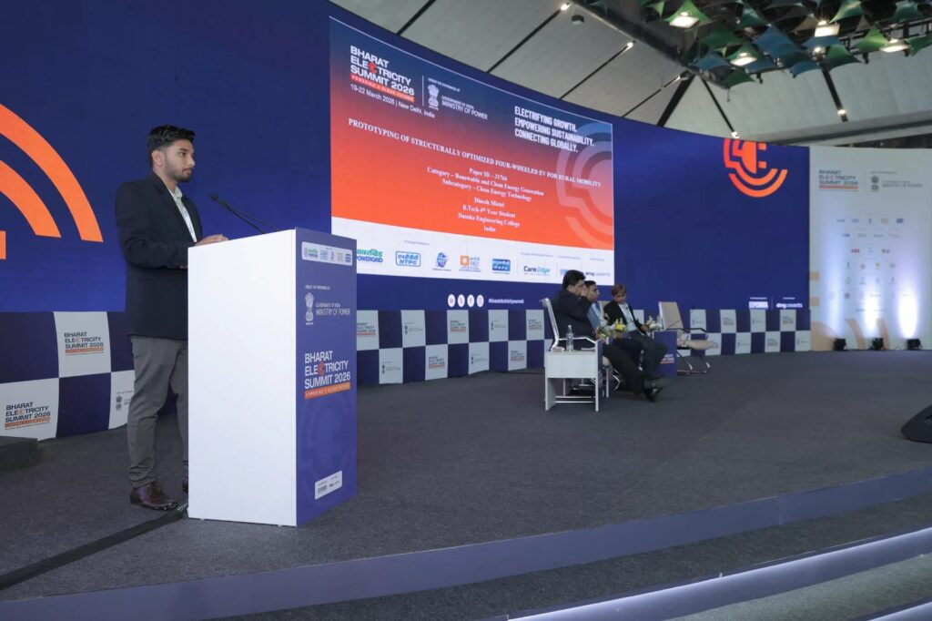 The research paper titled “Prototyping of Structurally Optimised Four-Wheeled EV for Rural Mobility” was presented on March 21, 2026, before an eminent gathering of industry leaders, policymakers, academicians, and researchers from across the country.