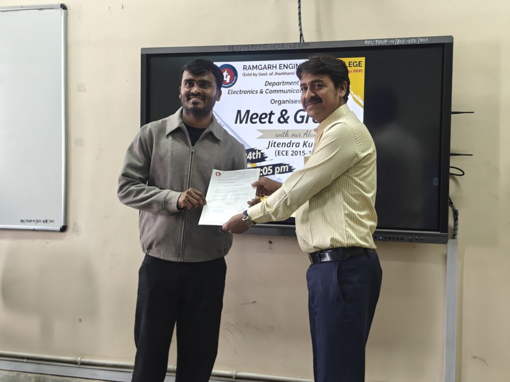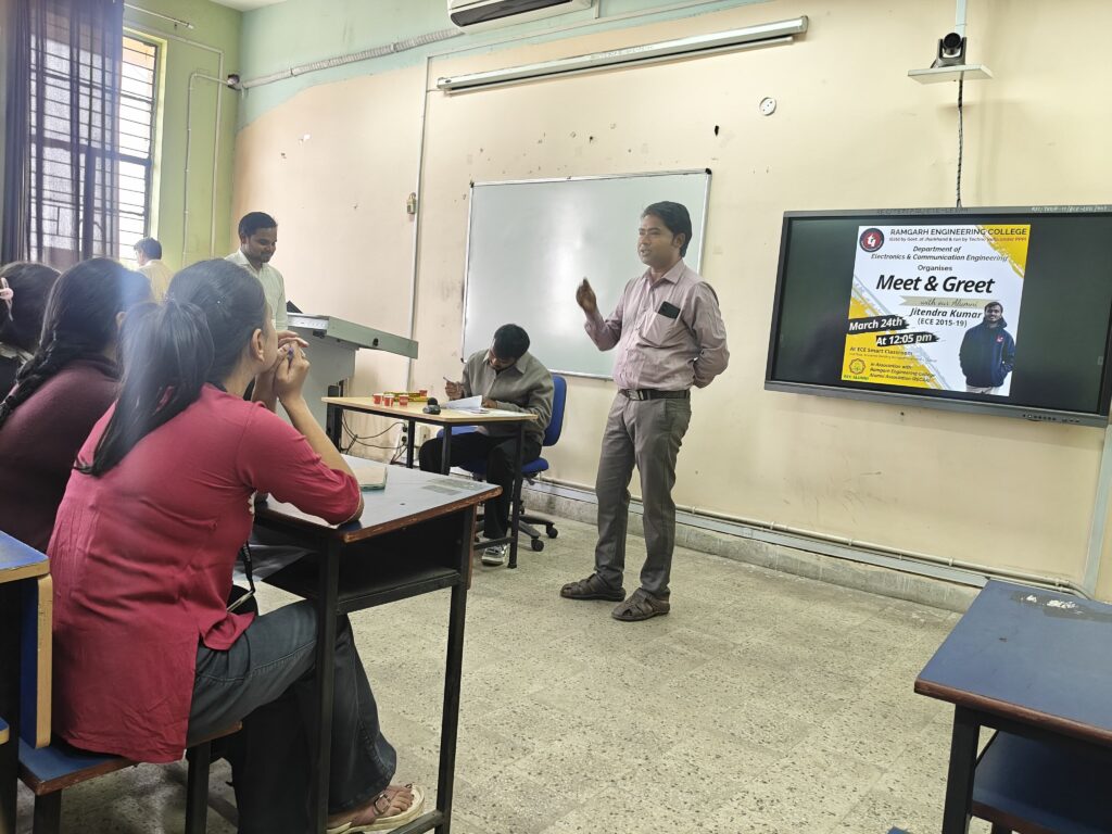 In a vibrant step toward strengthening industry-academia connections, the Department of Electronics and Communication Engineering at Ramgarh Engineering College, part of Techno India Group, hosted an engaging Meet & Greet session on 24 March that brought global insights right into the classroom. Designed as an interactive alumni connect, the session created a powerful platform for students to learn, reflect, and envision their future in core electronics.