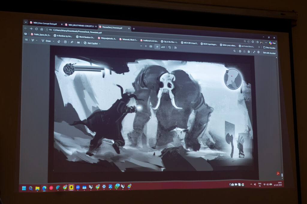Bringing together students from École Intuit Lab Kolkata, Techno India University, and selected creative professionals, the event showcased how game art blends creativity, design thinking, and science. Teams brainstormed, sketched, debated, and designed together — turning raw ideas into fully imagined worlds.