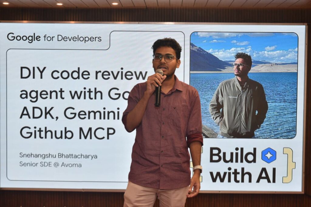 Following this, Snehangshu Bhattacharya, Senior Software Engineer at Avoma and Organizer of GDG Cloud Kolkata, demonstrated how AI can be integrated into everyday development workflows. By building a code review agent using Gemini 1.3 Pro, he showed how developers can practically apply AI in real-time scenarios.