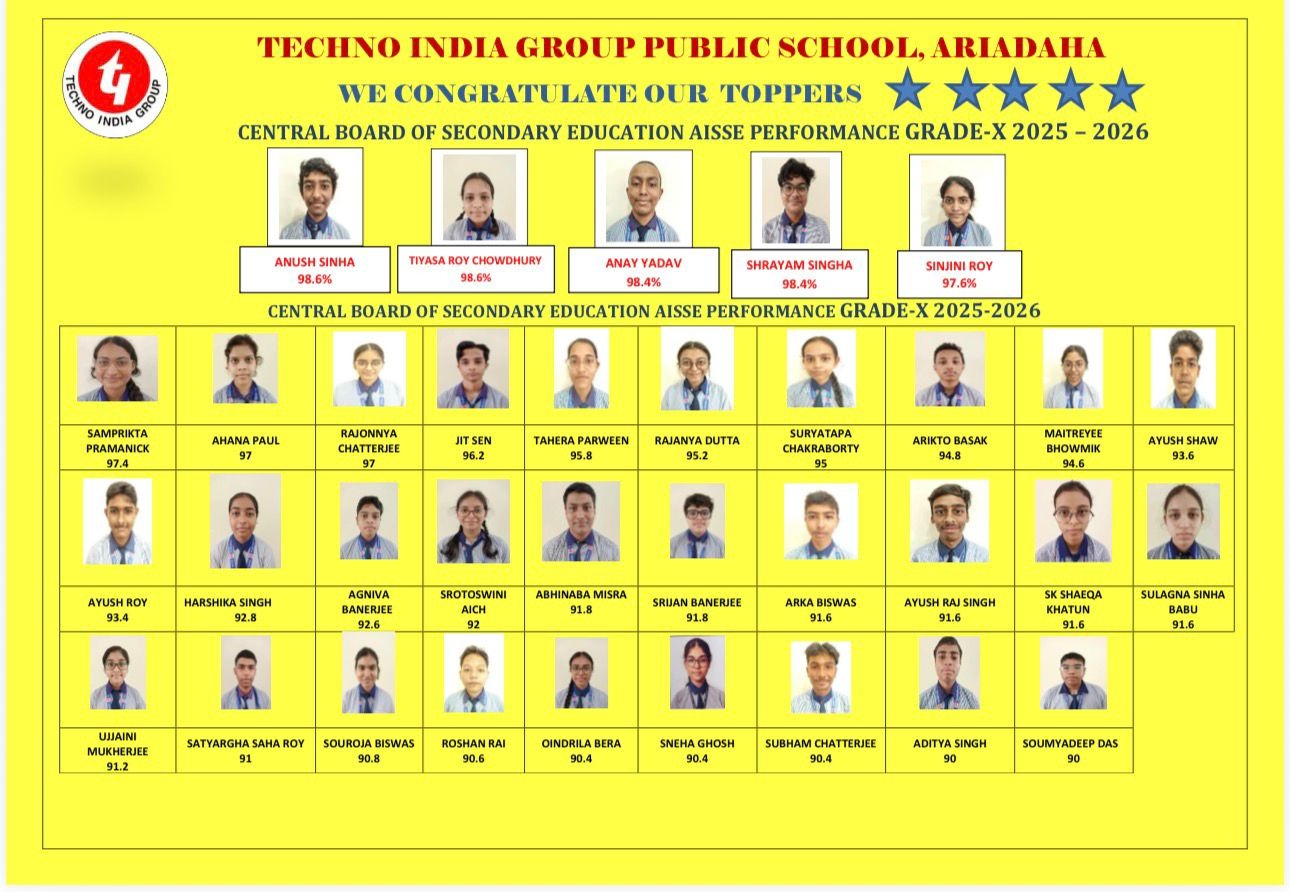Techno India Group Public School, Ariadaha has once again set a remarkable benchmark in academic excellence with its stellar performance in the CBSE Grade 10 Results 2025 (Phase I). The school achieved a perfect 100% pass rate, with all 81 students successfully clearing the examination.