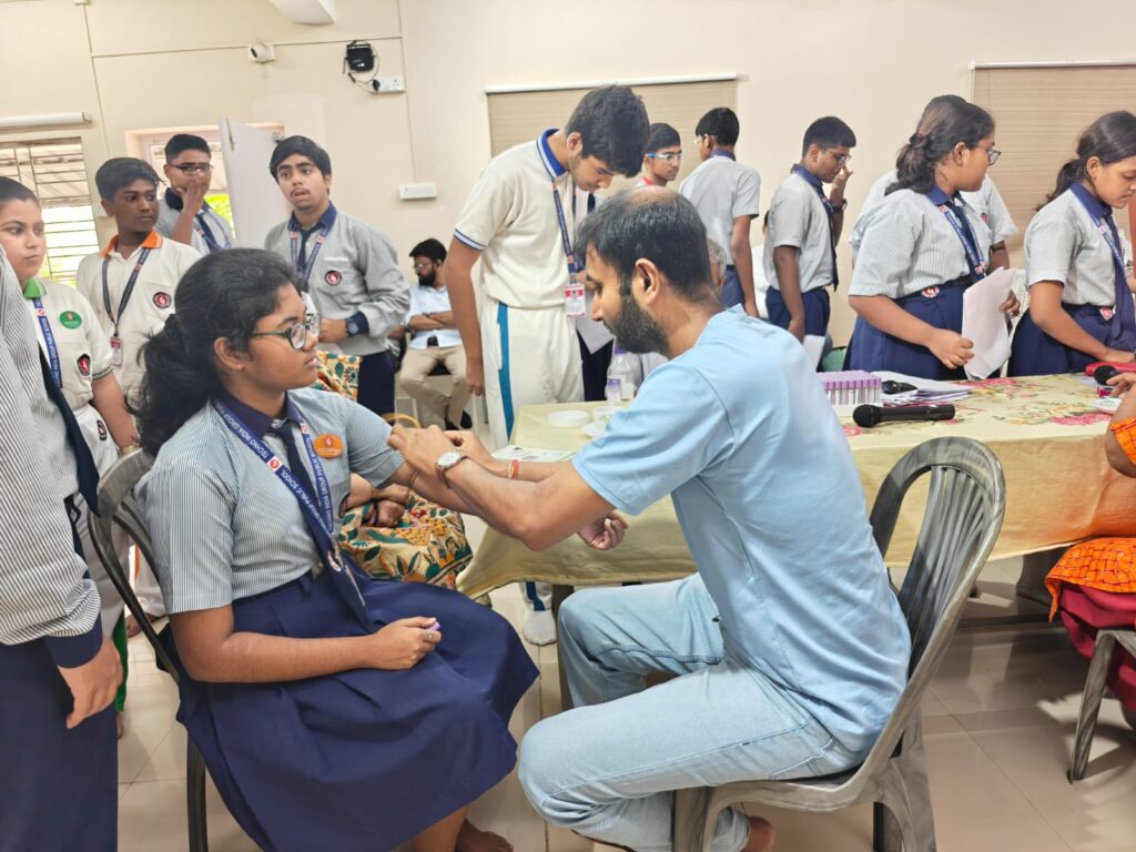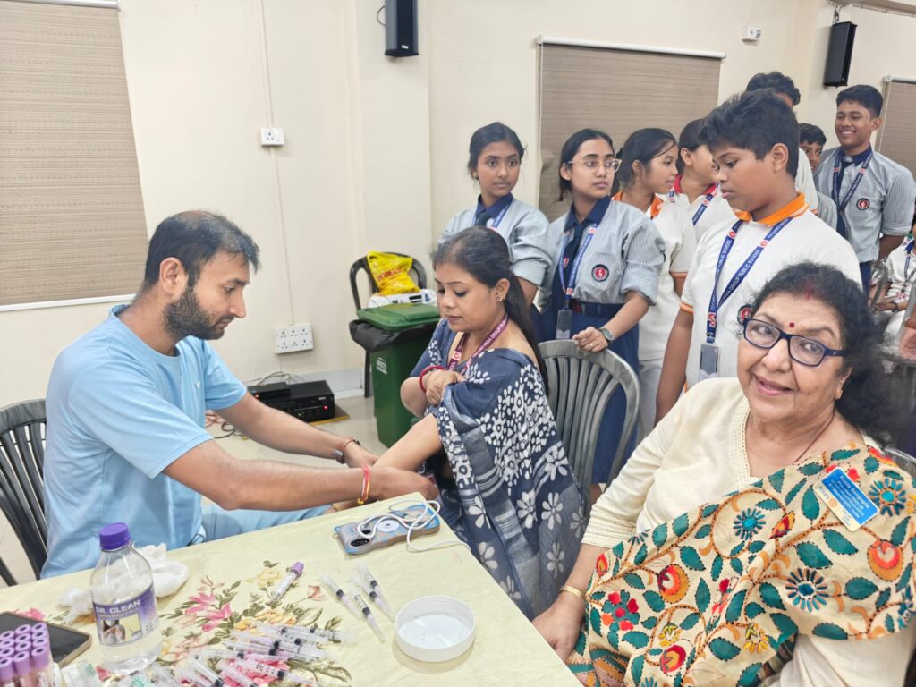 Conducted in collaboration with the Rotary Interact Club ‘Prayas’, the initiative was supported by the Rotary Club of Calcutta Majestic and a team of experienced doctors from Dr. B. C. Roy Hospital. The event began around 12 PM with an inspiring address by the respected Principal, who emphasized the importance of early detection and awareness about genetic disorders like thalassemia. Her words encouraged students to actively participate and understand the long-term impact of preventive healthcare.