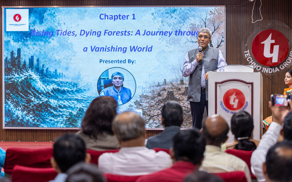 At a time when climate conversations are no longer optional but urgent, Techno India University, West Bengal hosted Colloquium-I on 24 April 2026, centered on the compelling theme “Rising Tides, Dying Forests: A Journey Through the Vanishing World.” Organized jointly by the Departments of Biotechnology, Microbiology, Geospatial Science, and Agriculture Science in collaboration with IQAC, the event marked the beginning of a monthly academic initiative aimed at enhancing faculty interaction and quality development.