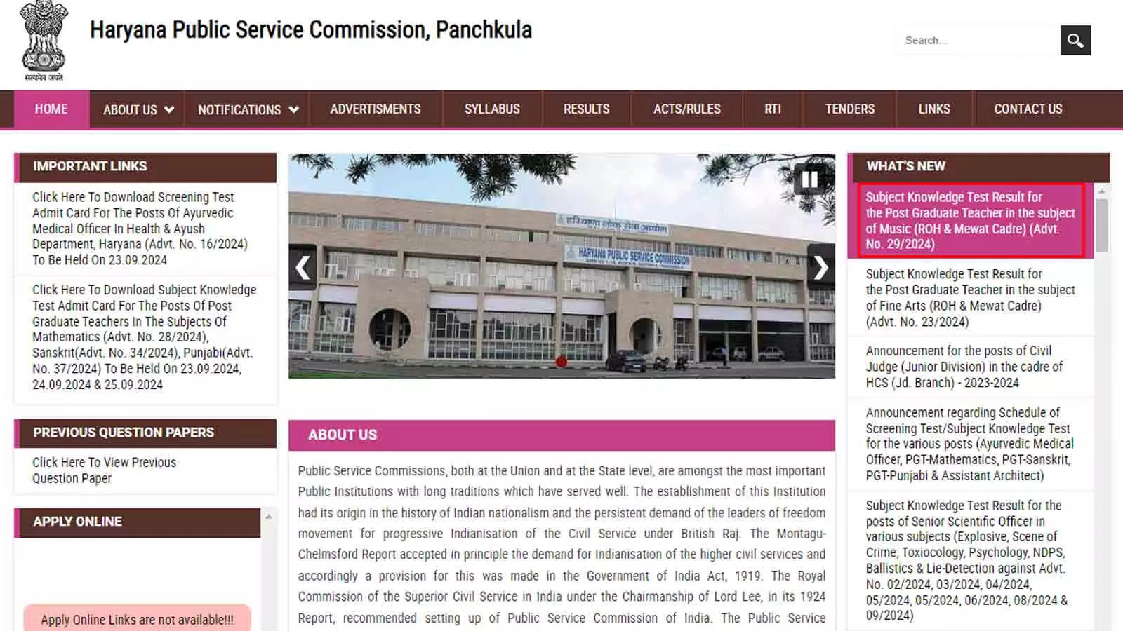 The Haryana Public Service Commission (HPSC) has announced the 2024 Post Graduate Teacher (PGT) subject knowledge test results. Candidates who took the test can view their results on the official HPSC website. The test was held for PGT Music posts across the Rest of Haryana and Mewat cadres. Successful candidates are now eligible for the interview stage. The results are provisional and subject to court outcomes and eligibility conditions.