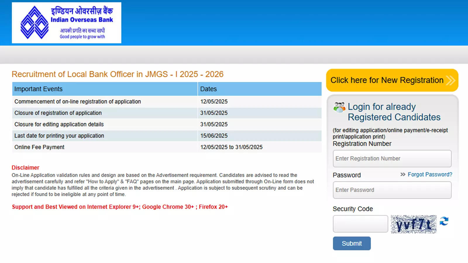 Indian Overseas Bank (IOB) is recruiting 400 Local Bank Officers in JMGS-I across six states. Online applications are open from May 12, 2025, to May 31, 2025, via www.iob.in. Candidates must be proficient in the local language of the state they apply to. Tamil Nadu has the highest number of vacancies. Selected candidates will receive a pay scale starting at ?48,480 plus allowances. Applicants must read all guidelines before applying and follow the steps for online registration.